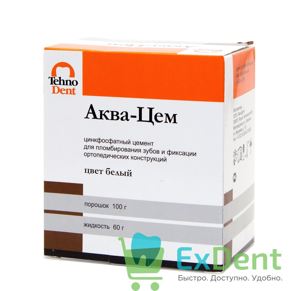 Аква-Цем белый - фосфатный цемент для пломбирования зубов и фиксации (100 г + 60 г)