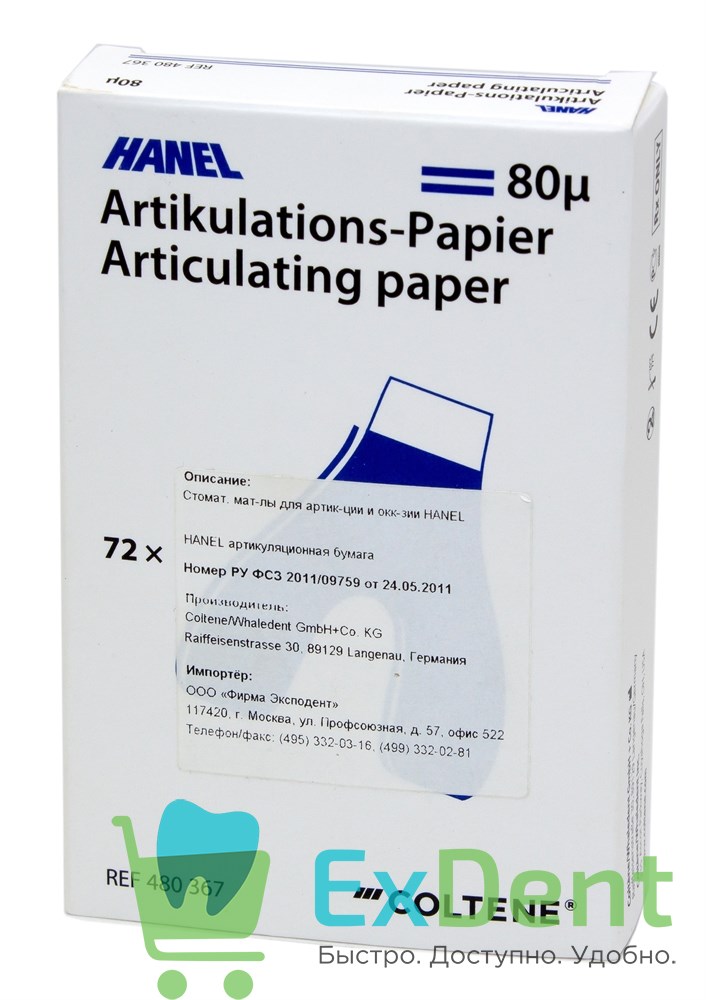 Артикуляционная бумага подковообразная, синяя HANEL (80 мкм х 72 шт)