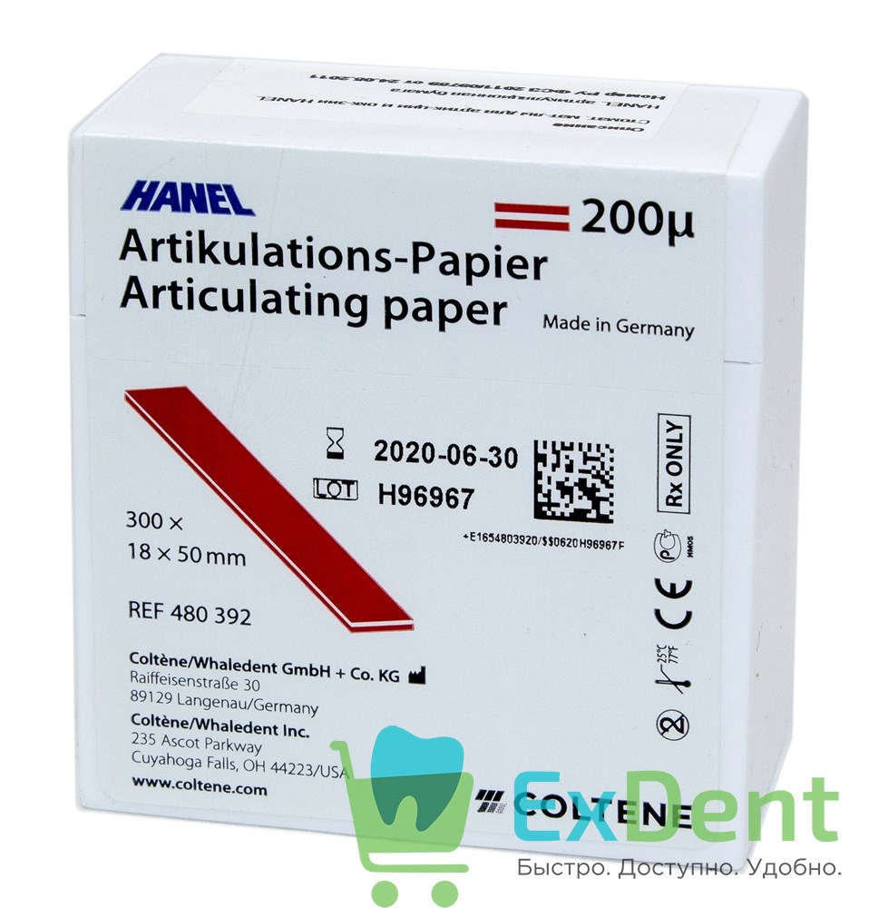 Артикуляционная бумага прямая, красная HANEL (200 мкм х 300 шт)