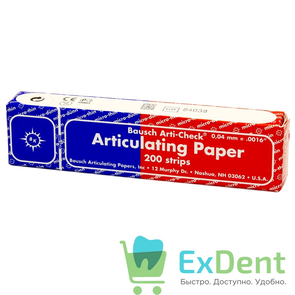 Артикуляционная бумага прямая, синяя / красная длинная Bausch (40 мкм х 200 шт)