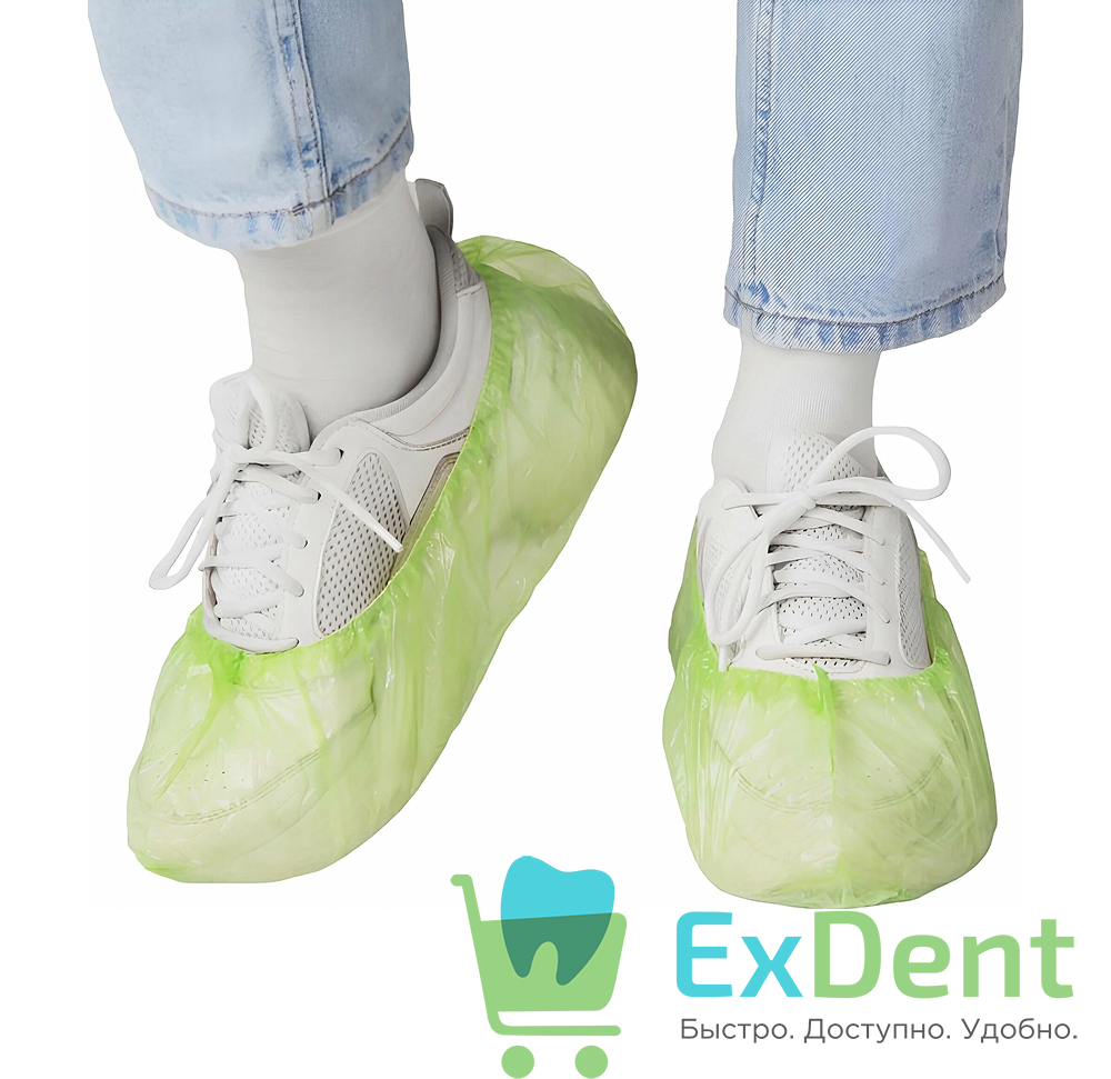 Бахилы прочные Элегрин Экстра Плюс, зеленые с двойной резинкой (3.5 г., 15 мкм) (100 шт)