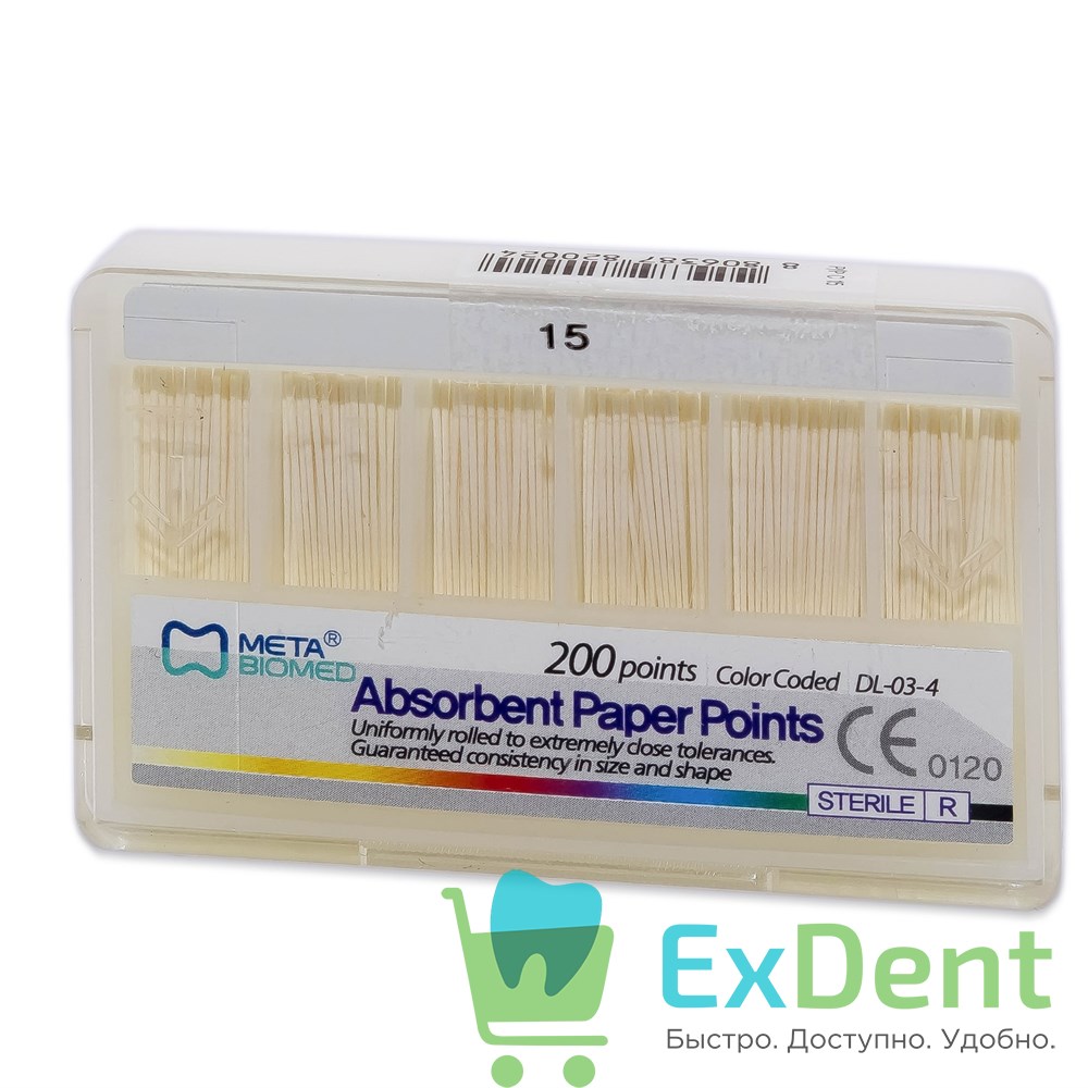 Бумажные штифты 02 №15 Meta - для удаления влаги в канале (200 шт)