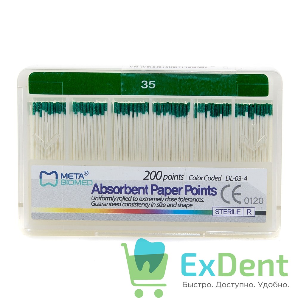 Бумажные штифты 02 №35 Meta - для удаления влаги в канале (200 шт)
