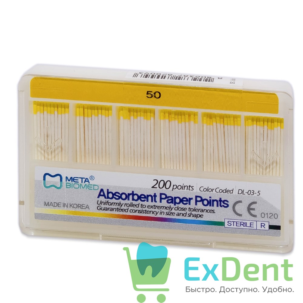 Бумажные штифты 02 №50 Meta - для удаления влаги в канале (200 шт)