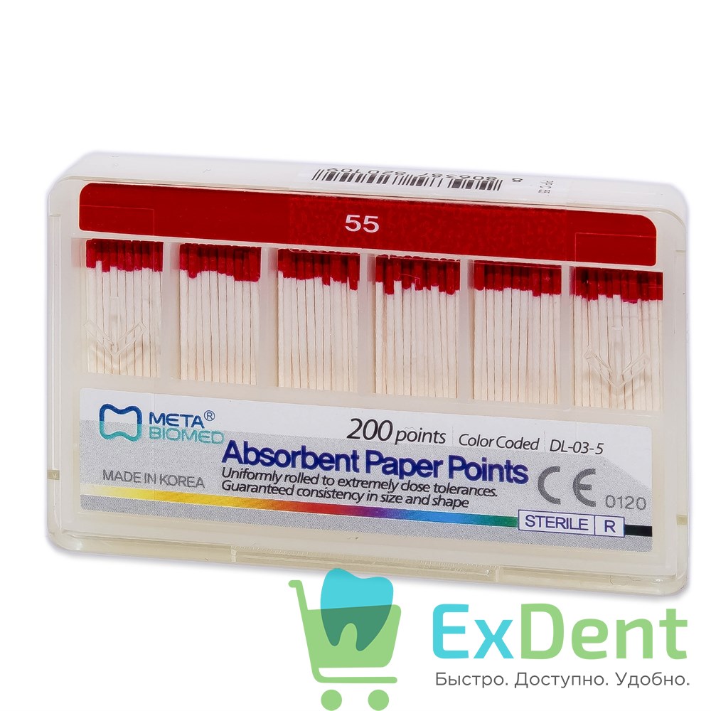 Бумажные штифты 02 №55 Meta - для удаления влаги в канале (200 шт)