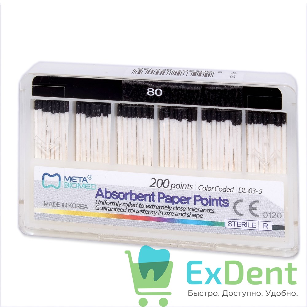 Бумажные штифты 02 №80 Meta - для удаления влаги в канале (200 шт)