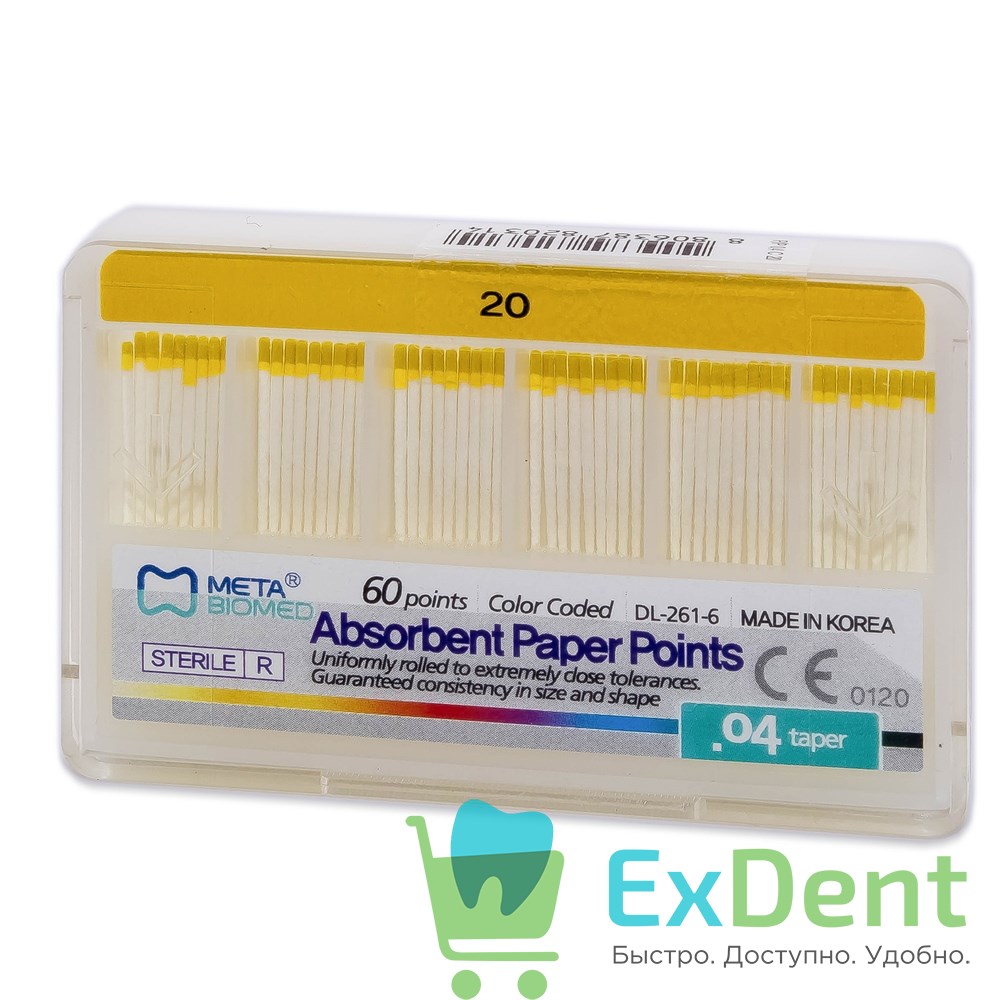 Бумажные штифты 04 №20 Meta - для удаления влаги в канале (60 шт)