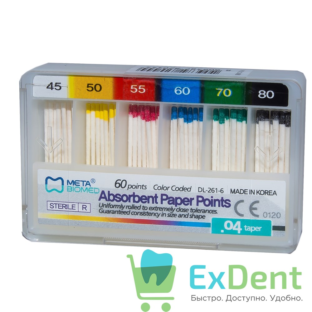 Бумажные штифты 04 №45-80 Meta - для удаления влаги в канале (60 шт)