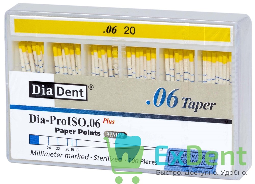 Бумажные штифты 06 №20 DiaDent для удаления влаги в канале (100 шт)