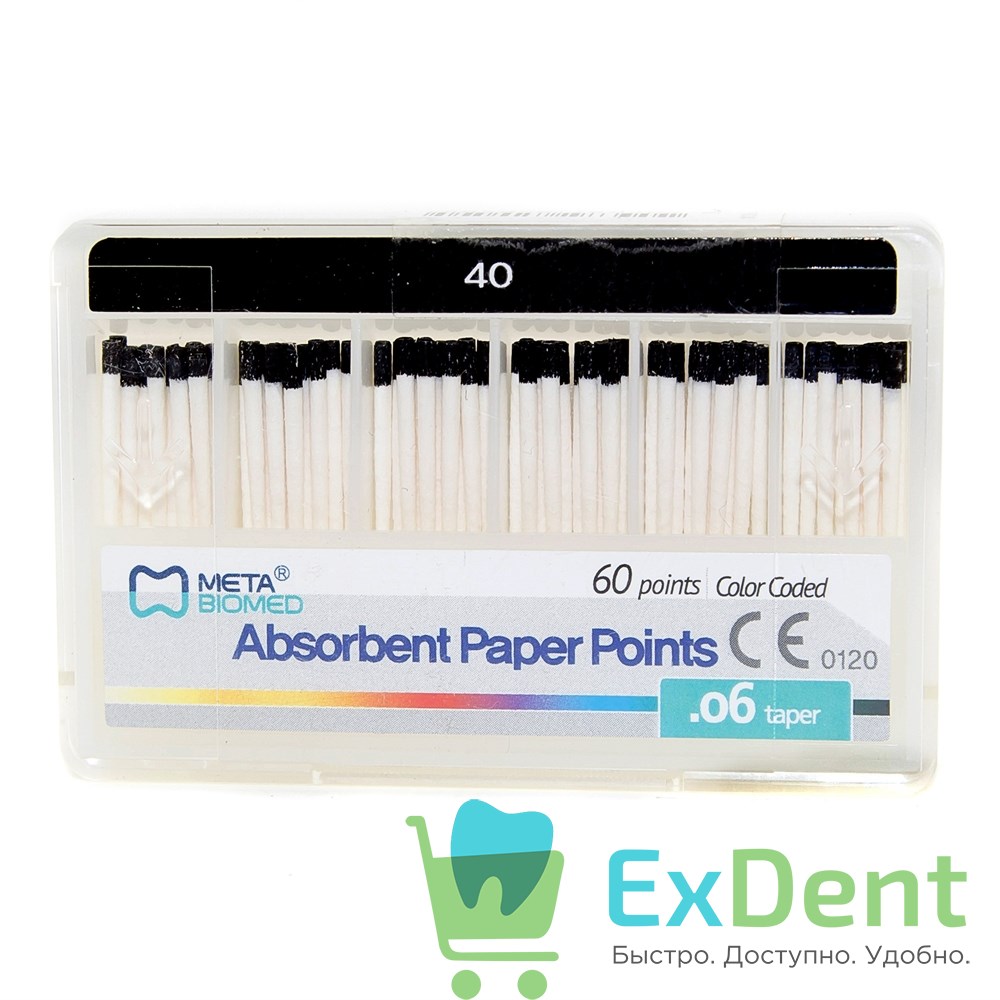 Бумажные штифты 06 №40 Meta - для удаления влаги в канале (60 шт)
