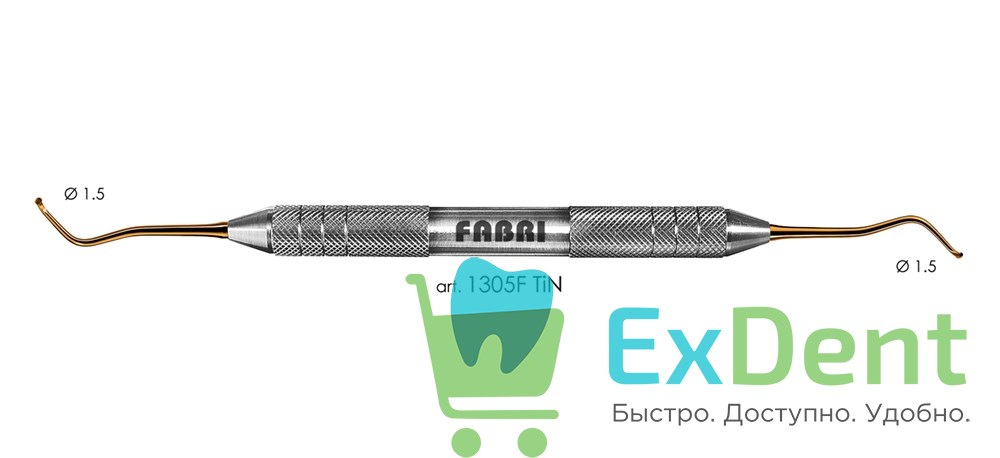 art: 1305F TiN - экскаватор FABRI серии GOLD F - основная серия инструментов FABRI. Легкая эргономичная ручка диаметром 10мм защитит от карпального синдрома. Покрытие нитрид-титана (TiN) значительно снижает прилипание композитов к рабочим частям и делает повержность инструментов более прочной. Вес: ~26 г. Стерилизация: tмах-1800С