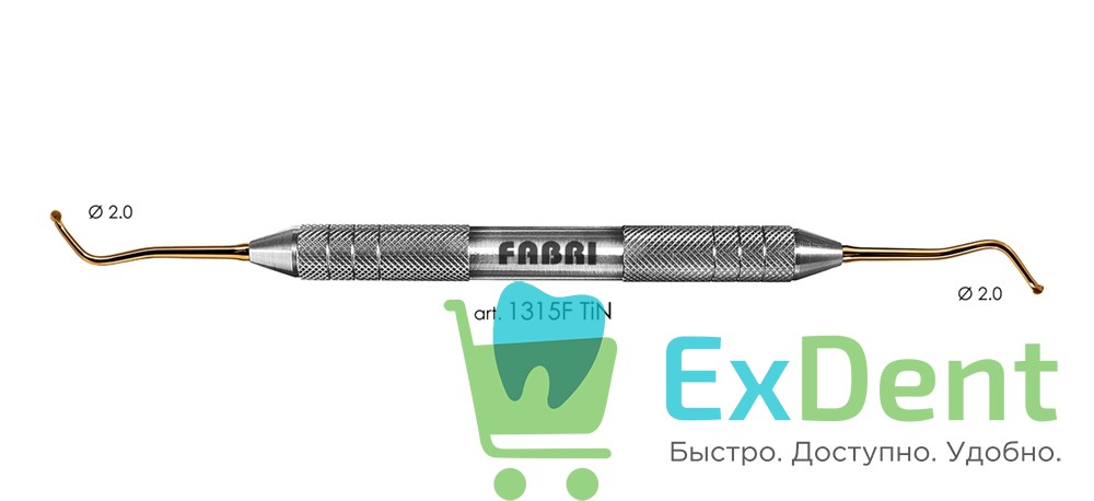 art: 1315F TiN - экскаватор FABRI серии GOLD F - основная серия инструментов FABRI. Легкая эргономичная ручка диаметром 10мм защитит от карпального синдрома. Покрытие нитрид-титана (TiN) значительно снижает прилипание композитов к рабочим частям и делает повержность инструментов более прочной. Вес: ~26 г. Стерилизация: tмах-1800С