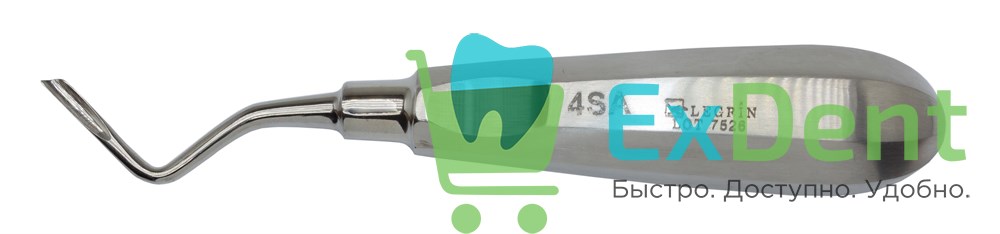 Штыковидный элеватор (элеватор Леклюза). Соединительный стержень элеватора штыкообразно изогнут (рис. 6.8, г). Рабочая часть (щечка) имеет копьевидную форму, сужается и истончается к концевому отделу. Одна поверхность щечки гладкая, другая — закругленная. Ручка круглая, более толстая в средней части, расположена перпендикулярно по отношению к соединительному стержню и рабочей части. За счет штыковидною изгиба продольная ось щечки и ось соединительного стержня расположены в параллельных плоскостях. Элеватор предназначен для удаления третьего нижнего большого коренною зуба.