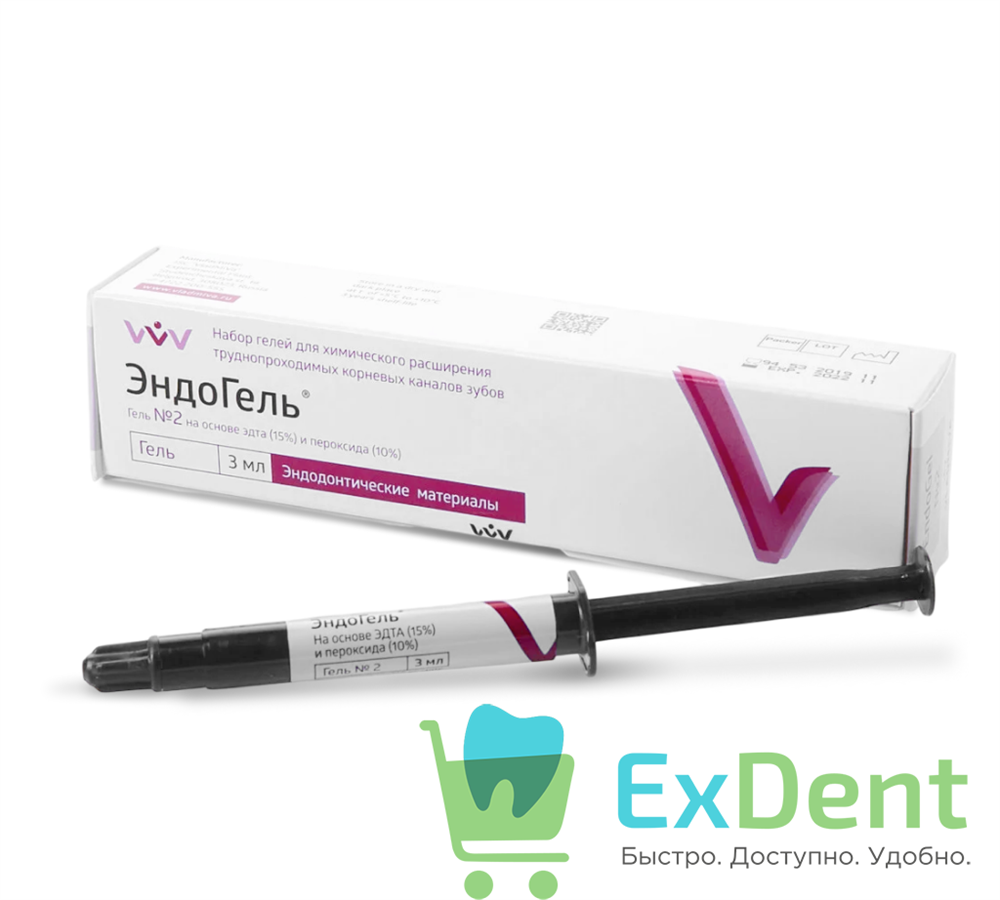 Гелеобразная форма выпуска облегчает применение материала в корневых каналах зубов верхней челюсти и служит хорошей смазкой для эндодонтических инструментов. Водорастворимая основа гелей позволяет легко вымывать и очищать каналы струей воды.