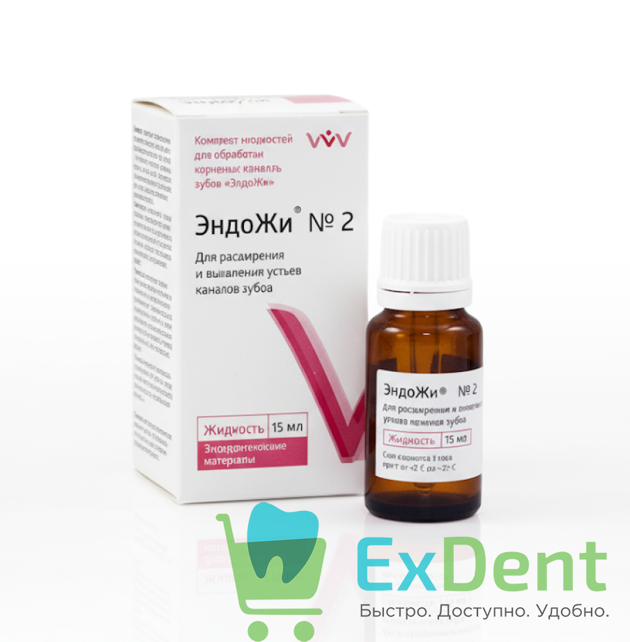 ЭндоЖи № 2 — для выявления устья каналов и их расширения, содержит смесь калиевой и натриевой солей ЭДТА (17%) и центимониум бромид — поверхностно-активный антисептик, обеспечивающий пенообразование, быстрое проникновение препарата в микроканальца и предотвращающий оседание дентинных опилок, что облегчает их извлечение из канала.