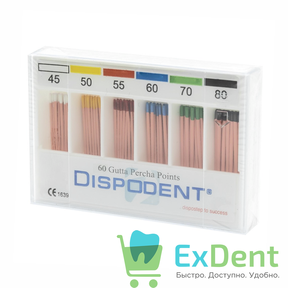 Гуттаперчевые штифты 04 №45-80 Dispodent для пломбирования корневых каналов (60 шт)