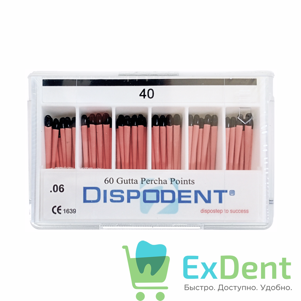 Гуттаперчевые штифты 06 №40 Dispodent для пломбирования корневых каналов (60 шт)