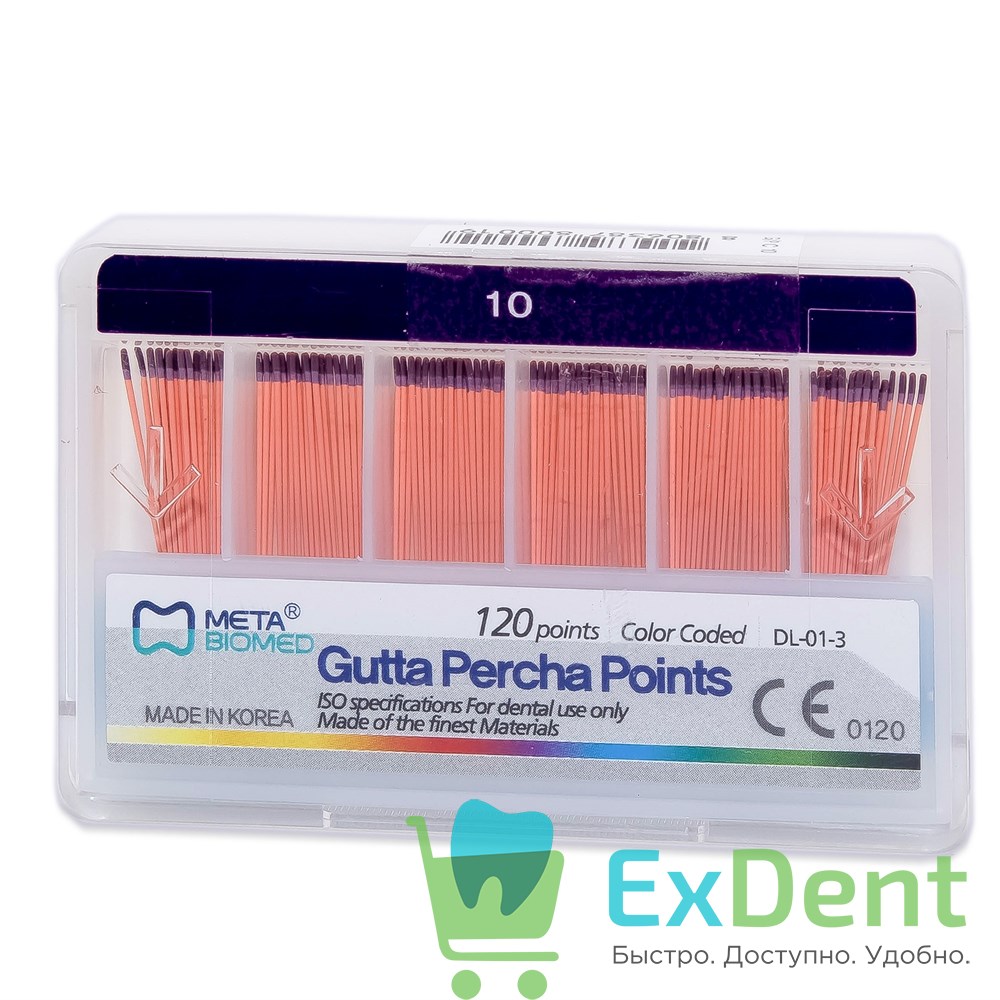 Гуттаперчевые штифты 02 №10 Meta - для пломбирования корневых каналов (120 шт)
