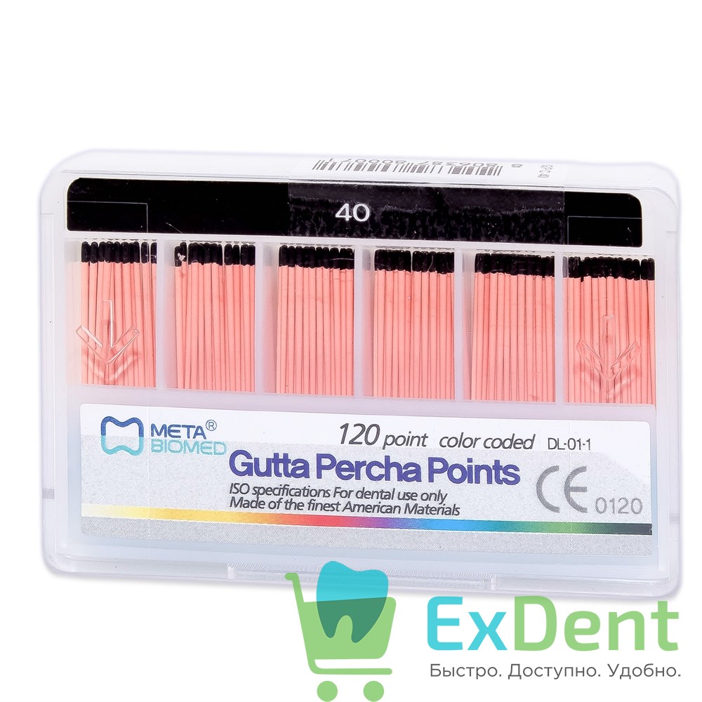 Гуттаперчевые штифты 02 №40 Meta - для пломбирования корневых каналов (120 шт)