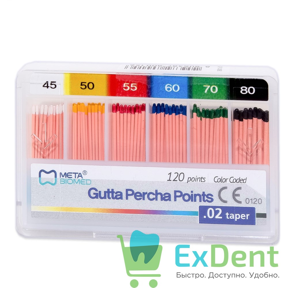 Гуттаперчевые штифты 02 №45-80 Meta - для пломбирования корневых каналов (120 шт)