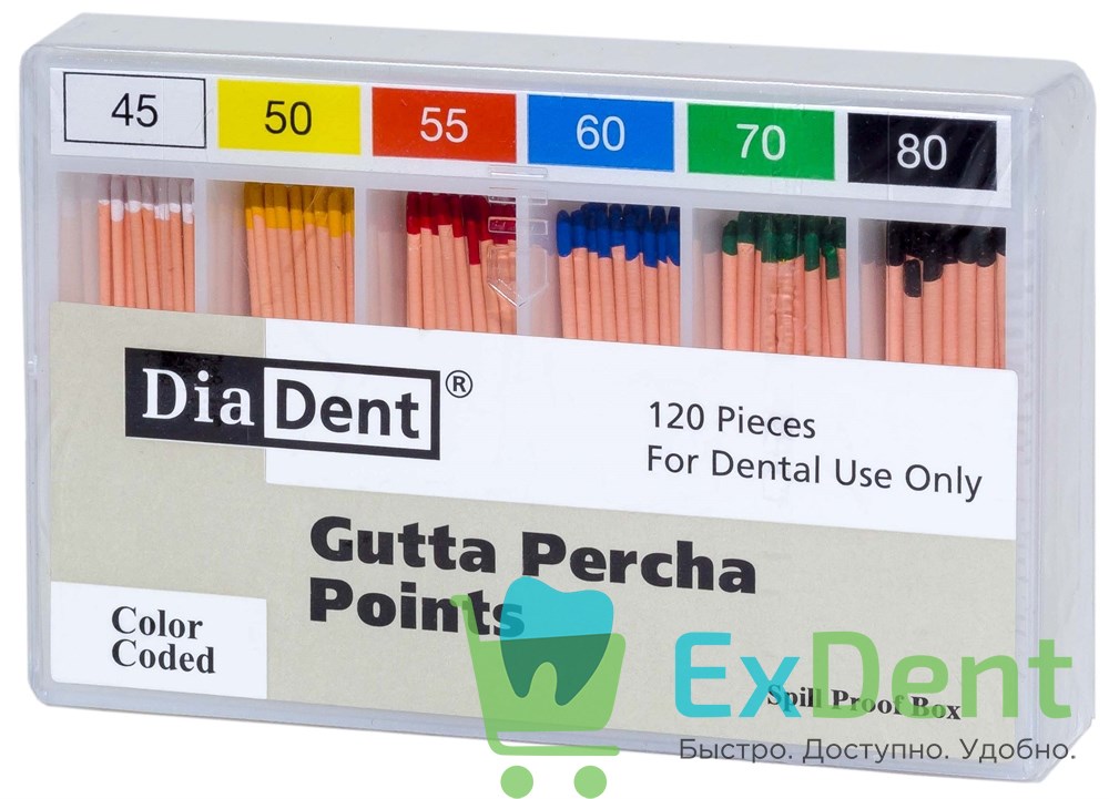 Гуттаперчевые штифты 02 №45-80 DiaDent для пломбирования корневых каналов (120 шт)