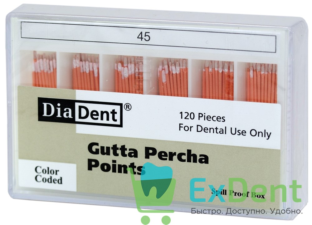 Гуттаперчевые штифты 02 №45 DiaDent для пломбирования корневых каналов (120 шт)