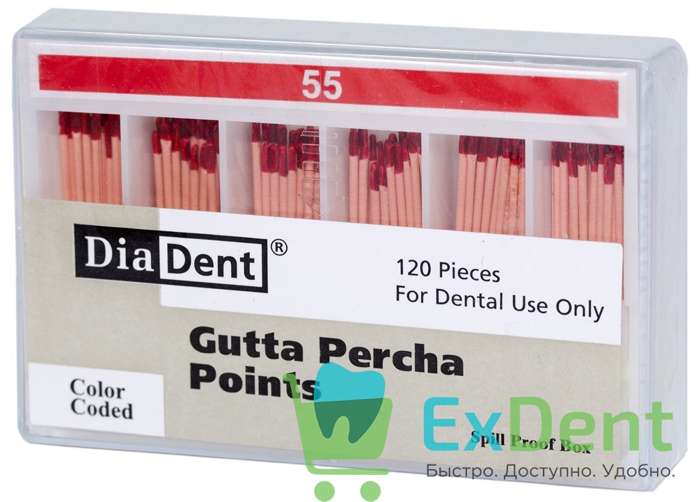 Гуттаперчевые штифты 02 №55 DiaDent для пломбирования корневых каналов (120 шт)
