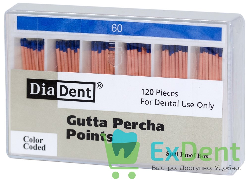 Гуттаперчевые штифты 02 №60 DiaDent для пломбирования корневых каналов (120 шт)