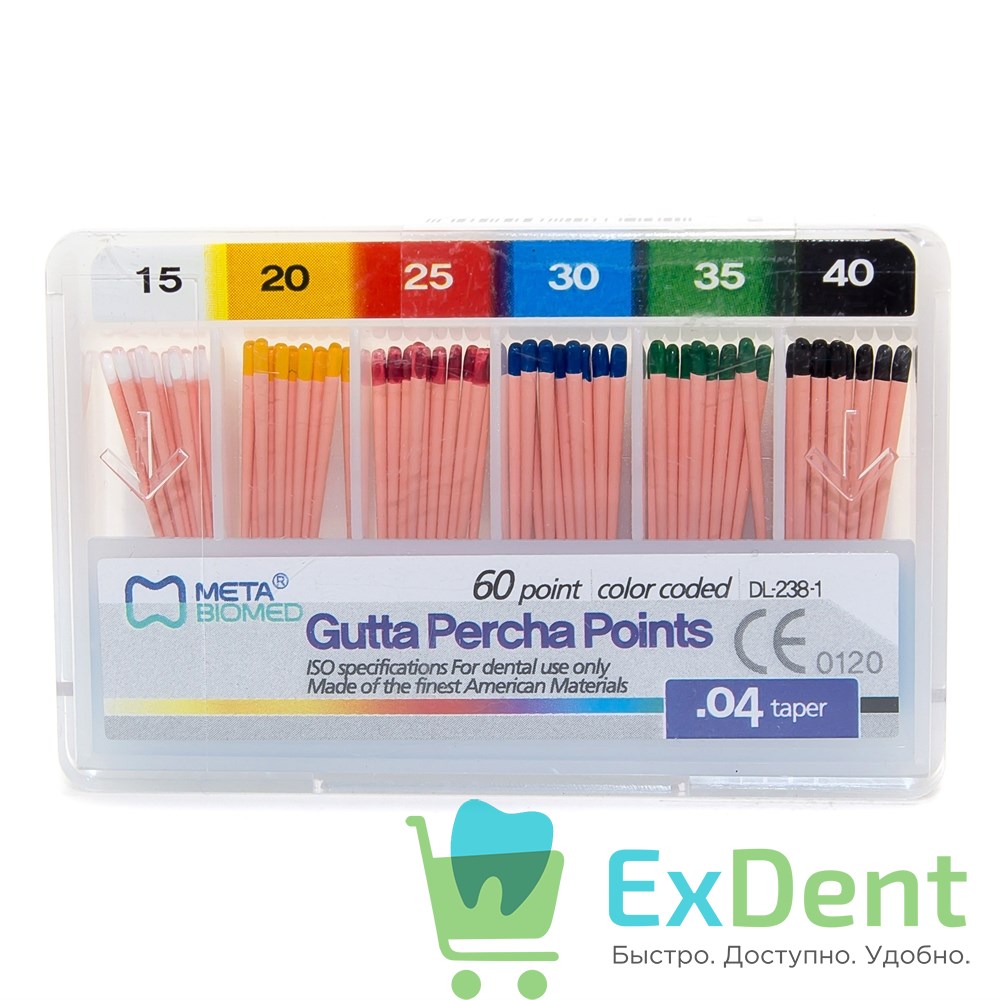 Гуттаперчевые штифты 04 №15-40 Meta - для пломбирования корневых каналов (60 шт)