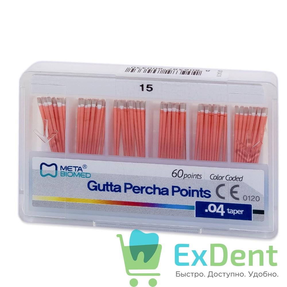 Гуттаперчевые штифты 04 №15 Meta - для пломбирования корневых каналов (60 шт)