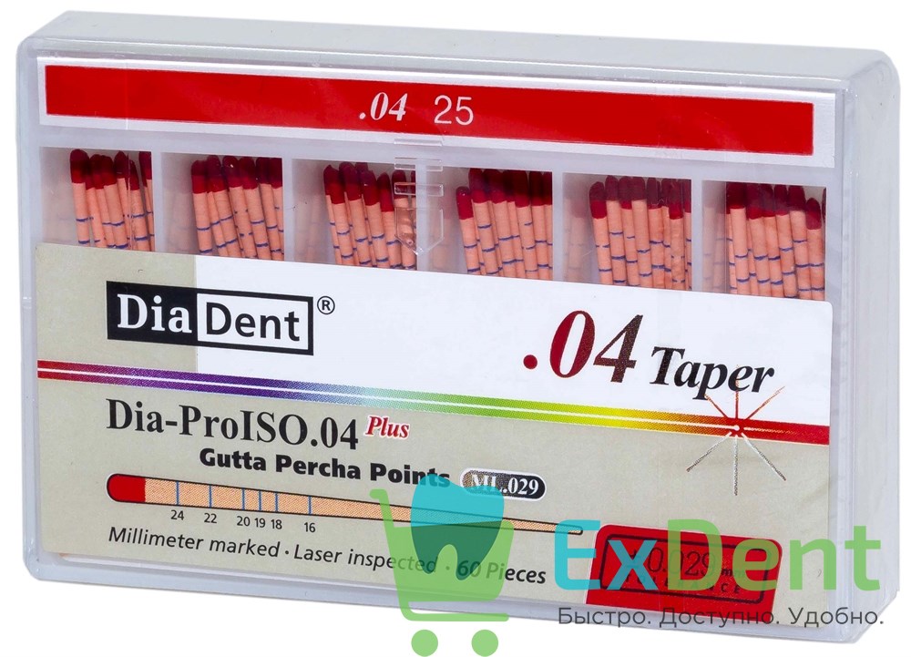 Гуттаперчевые штифты 04 №25 DiaDent для пломбирования корневых каналов (60 шт)