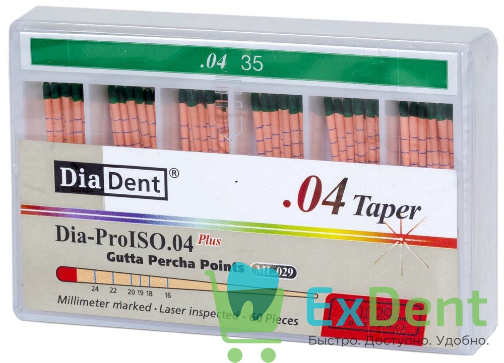 Гуттаперчевые штифты 04 №35 DiaDent для пломбирования корневых каналов (60 шт)