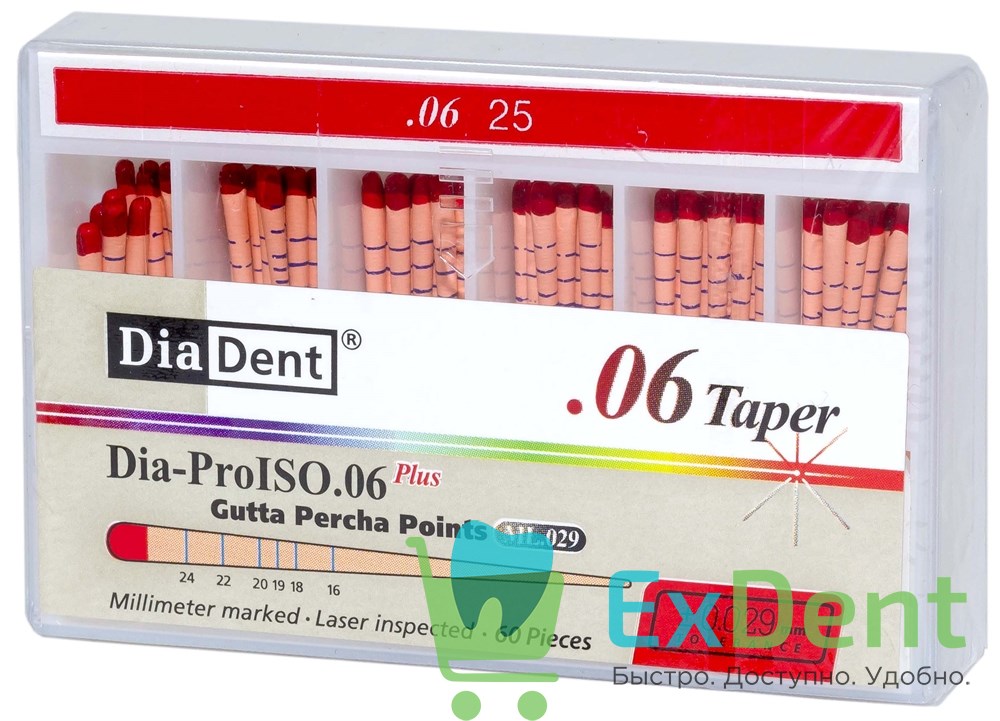 Гуттаперчевые штифты 06 №25 DiaDent для пломбирования корневых каналов (60 шт)