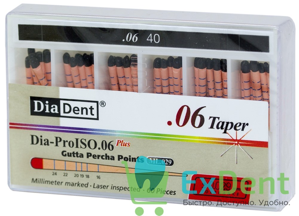 Гуттаперчевые штифты 06 №40 DiaDent для пломбирования корневых каналов (60 шт)