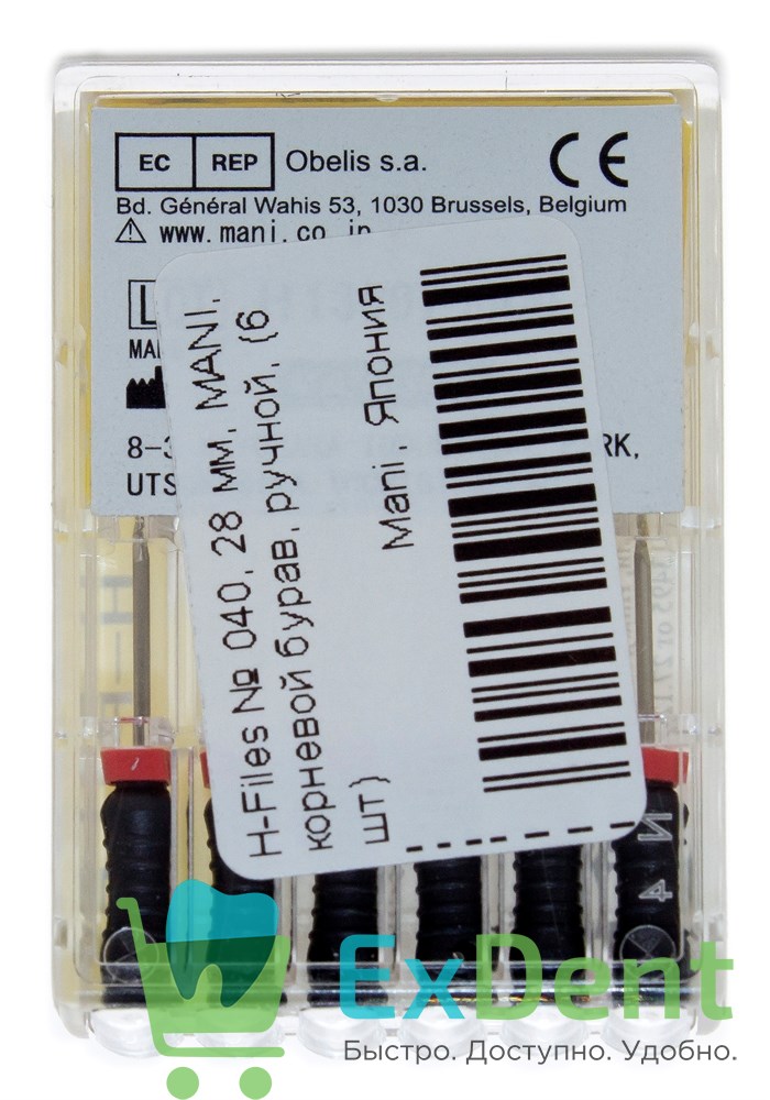 H-Files №40, 28 мм, MANI, корневой бурав, ручной (6 шт)
