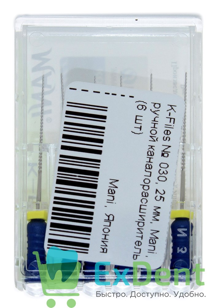 K-Files №30, 25 мм, Mani, ручной каналорасширитель (6 шт)