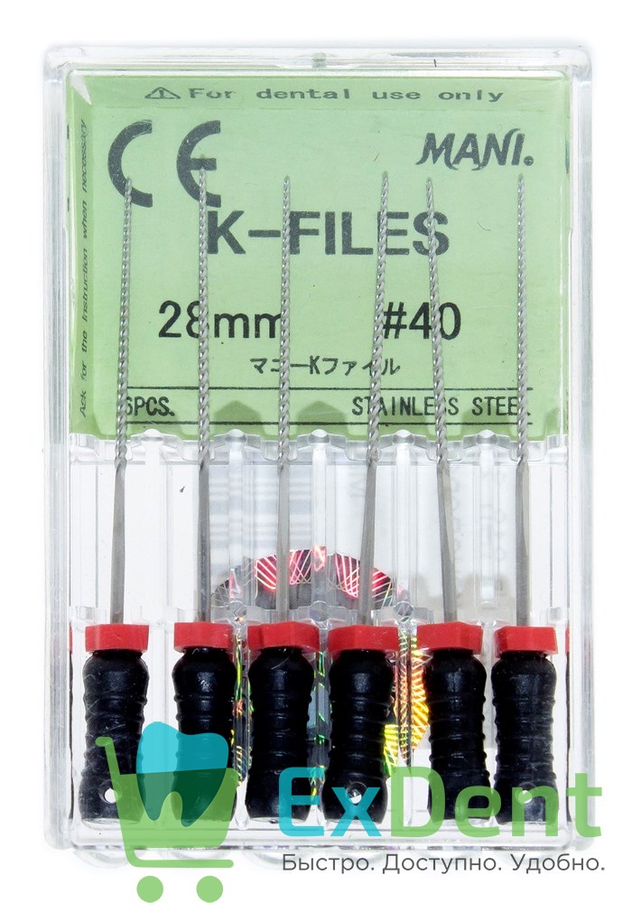 K-Files №40, 28 мм, Mani, ручной каналорасширитель (6 шт)