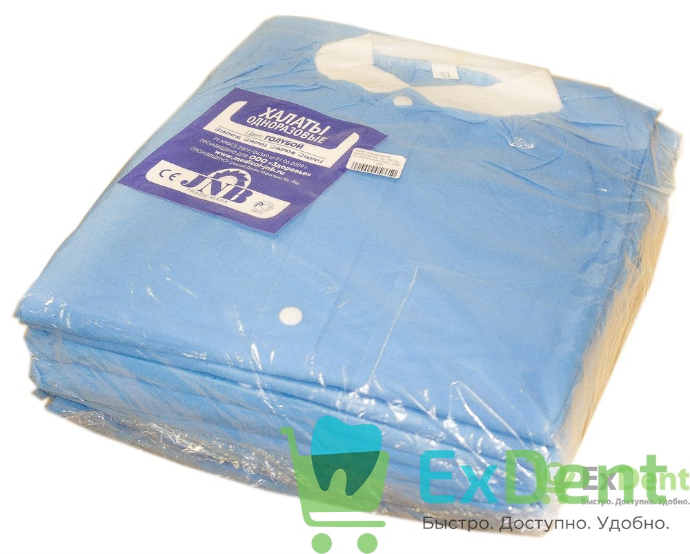 Халат одноразовый на кнопках (рукав с трикотажными манжетами), нестерильный,(10 шт./уп.)