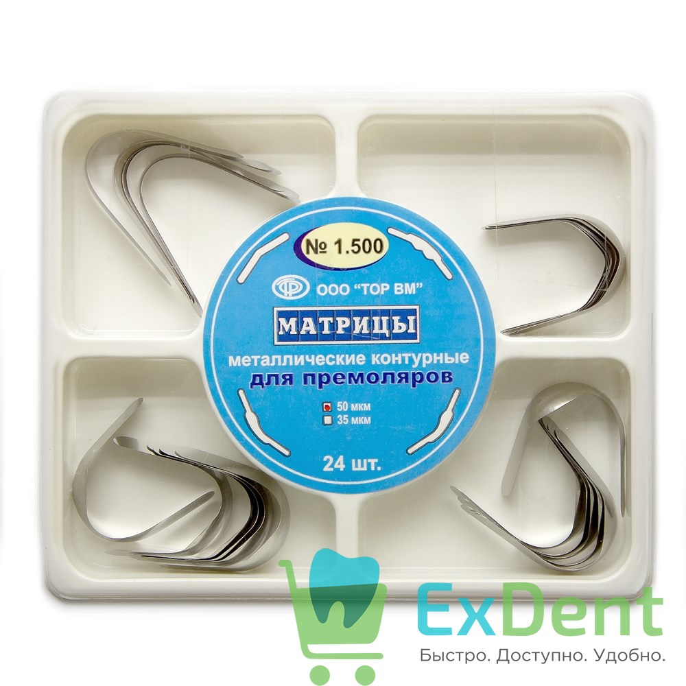 Матрицы металлические контурные для премоляров, набор 4 формы, (50 мкм х 24 шт)