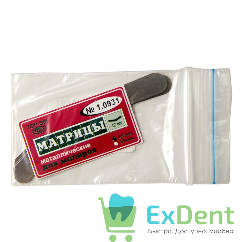 Матрицы металлические плоские для моляров, 50 мкм (12 шт)