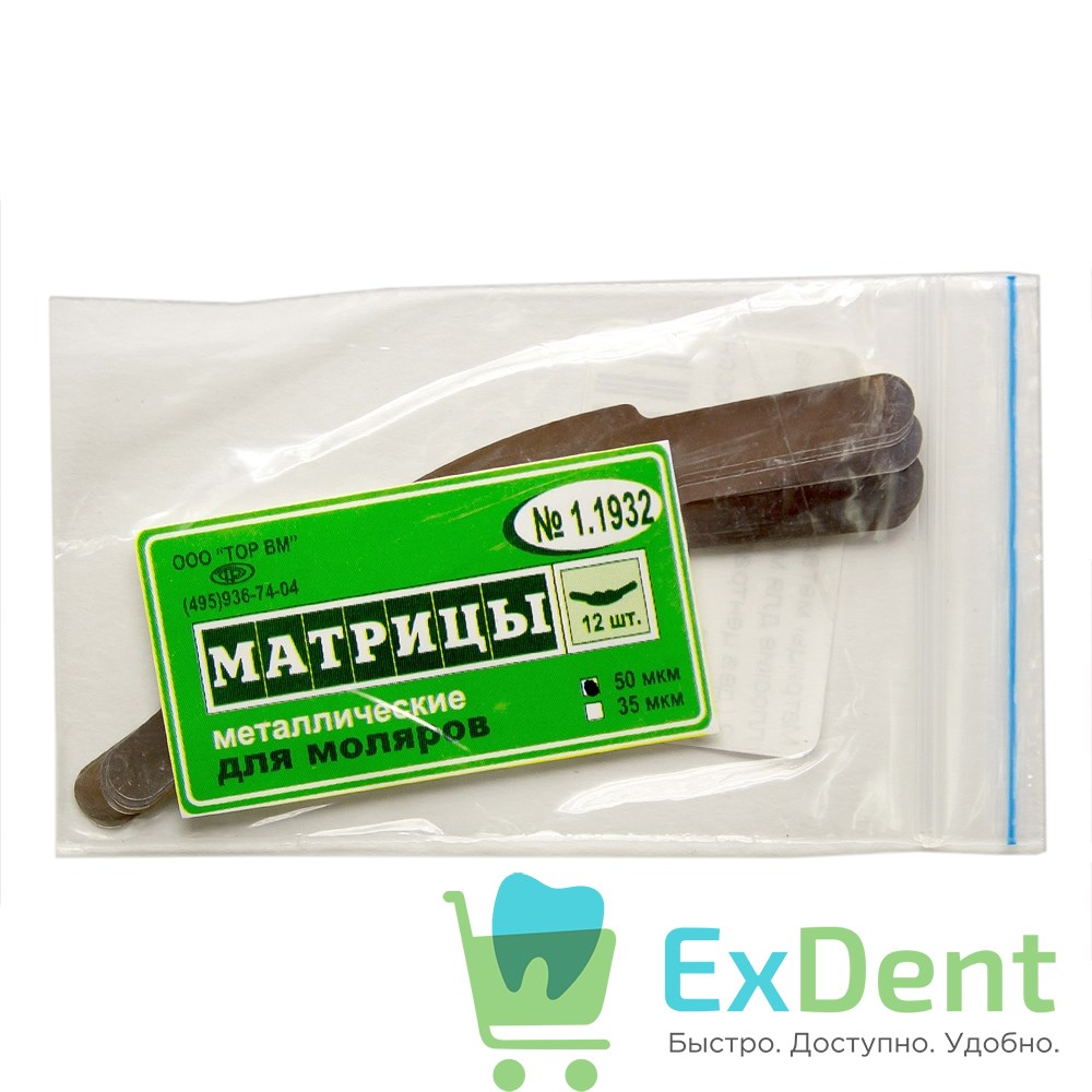 Матрицы металлические плоские для моляров, форма 2 (два центральных выступа), (50 мкм х 12 шт)