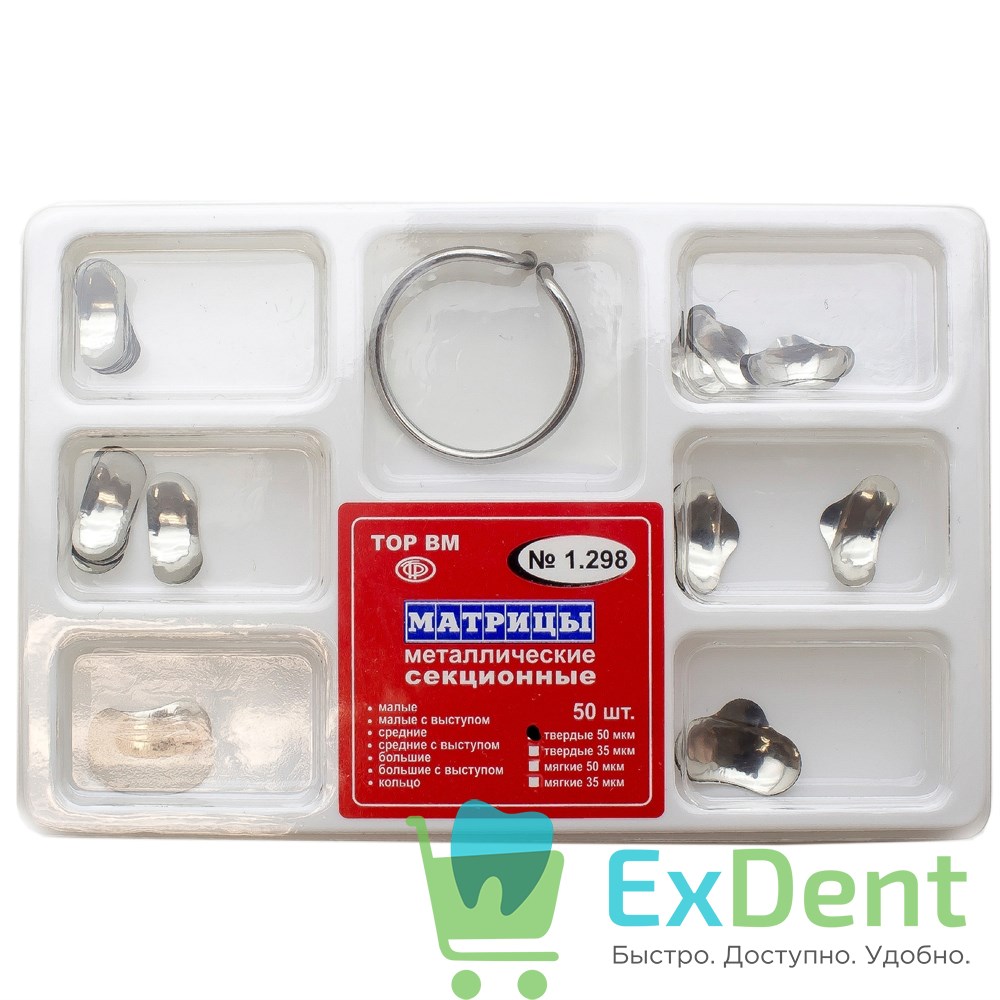 Матрицы металлические секционные, набор 6 видов + кольцо, твердые (50 мкм х 50 шт)