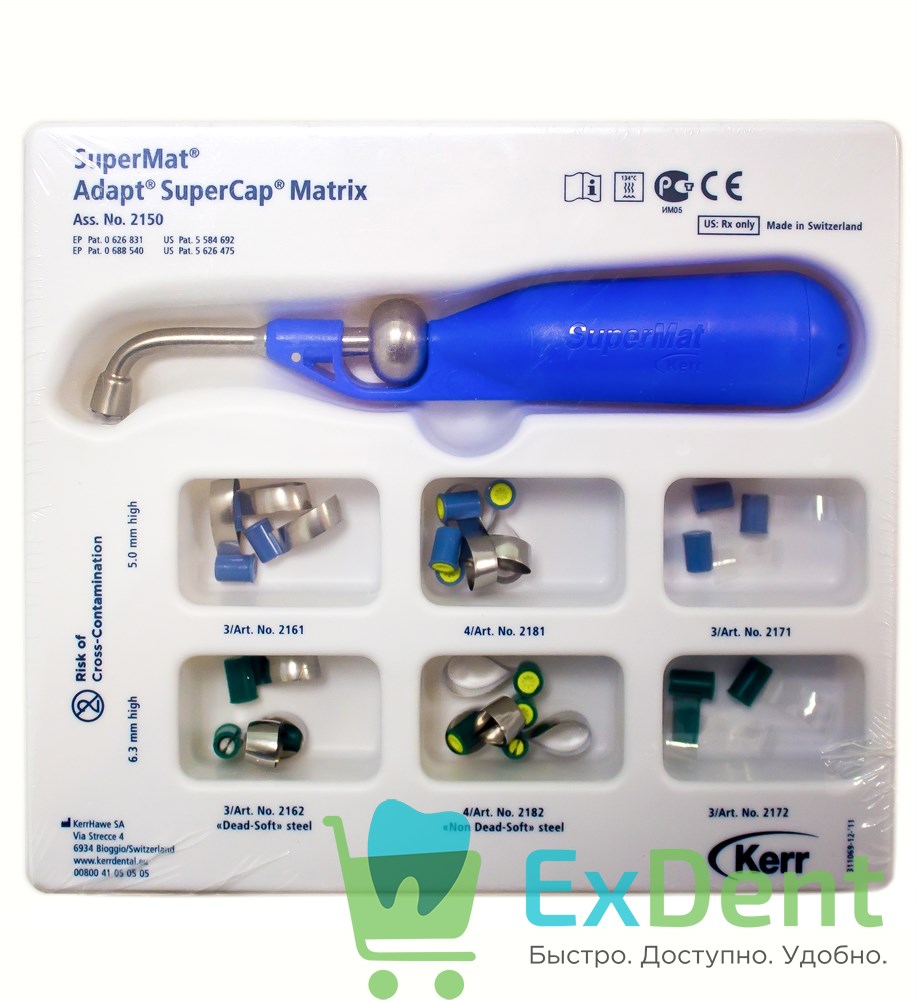 Super Mat и Adapt Super Cap Matrix – идеальное решение для макрореставраций. Универсальная система натяжения пластмассовых и стальных матриц в области жевательных зубов для быстрого, легкого и стандартизированного использования. Тончайшие кольцевые матрицы, выпуклые в соответствии со статистическими данными об анатомии зуба. Имеются 2 высоты матриц с неизменяющейся формой для моляров и премоляров, изготовленных из стали или прозрачного пластика. Предварительно смонтированы на катушках Super Cap, являющихся средством натяжения системы Super Mat.