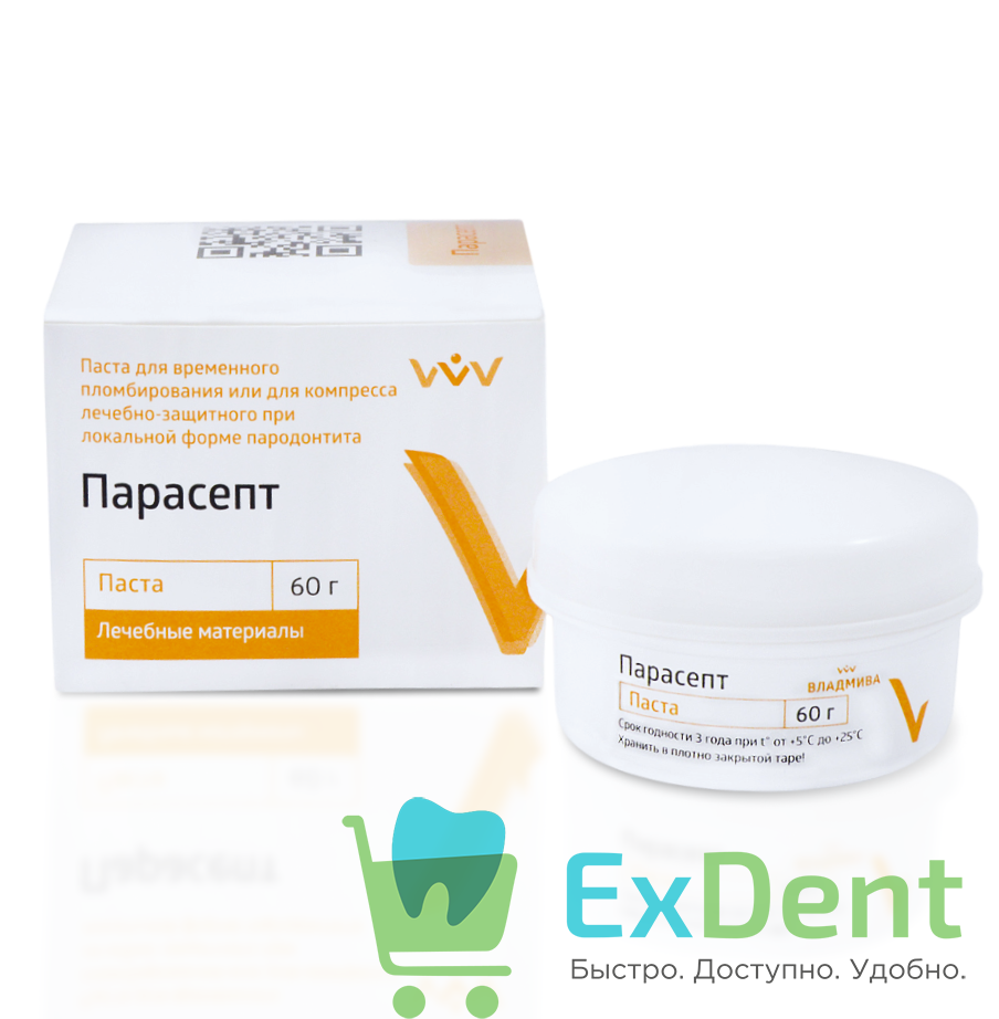 Парасепт антисептический представляет собой безэвгенольную пластичную пасту, на основе порошка цинксульфатного цемента и биосовместимого волокнистого наполнителя. Лечебное действие пасты обусловлено наличием в ее составе метронидазола, активного в отношении грамположительных, грамотрицательных и анаэробных бактерий. Парасепт антисептический эффективно действует на патогенную флору, останавливая воспалительный процесс.