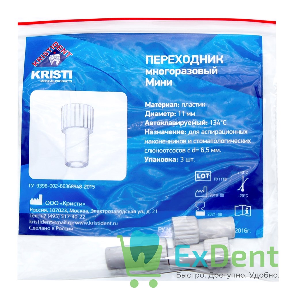 Переходники для аспирационных наконечников и слюноотсосов Мини (11 мм, d = 6,5 мм), (3 шт)