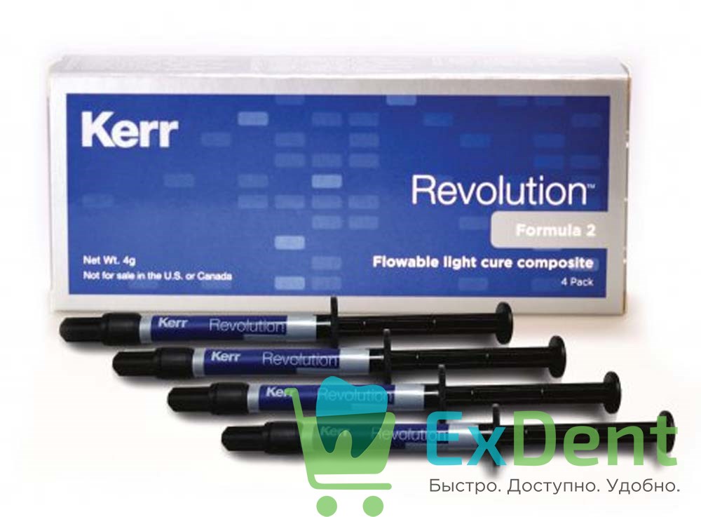- 29515Revolution™ Formula 2 Assorted – набор ассорти4 шприца (по 1 г): 1 очень светлый, 1 оттенок режущего края, 1 десневой и 1 дентин белый, 20 насадок