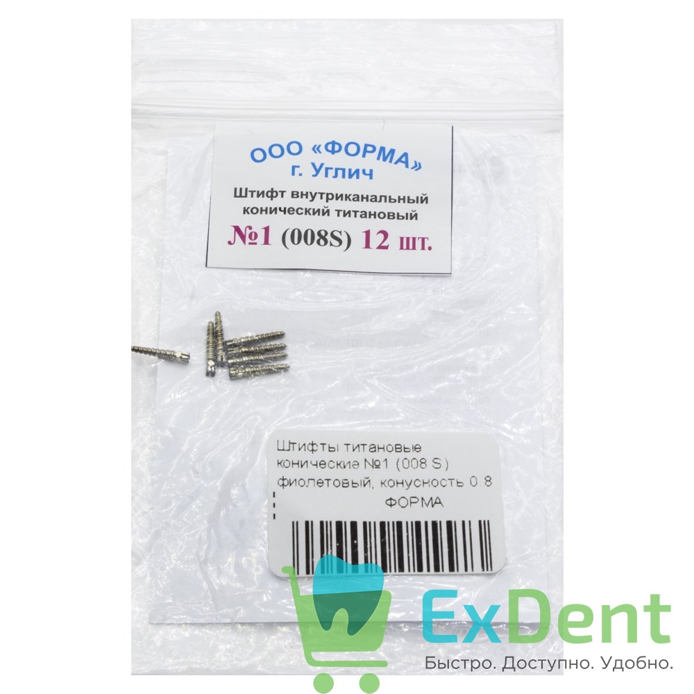 Штифты титановые конические №1 (008 S) фиолетовый, конусность 0.8 (25 шт)
