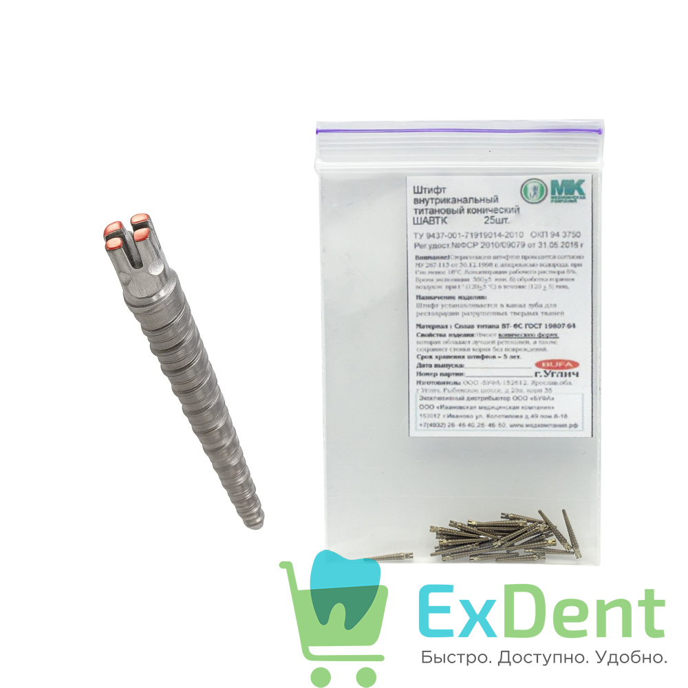 Штифты титановые конические 308 L красный, конусность 0.8 (12 шт)