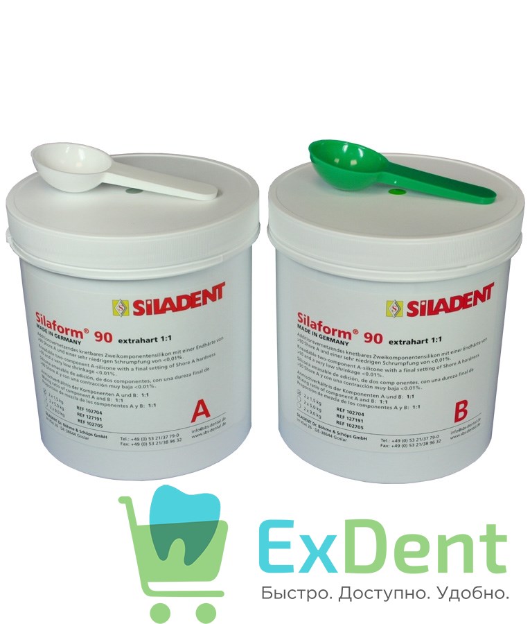 Пастообразный двухкомпонентный A-силикон с повышенной прочностью при затвердении с широким спектром применения: изготовление силиконовых оттисков, устранение поднутрений, ремонт моделей, регистрация прикуса и др.