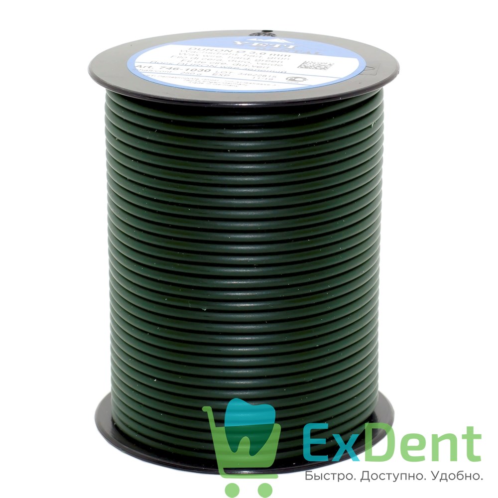 Восковая проволока Duron, D=3,0 мм, твердая, зеленая (250 г)